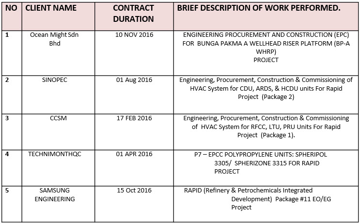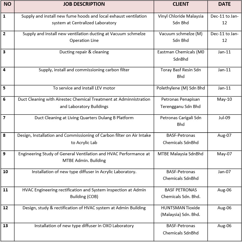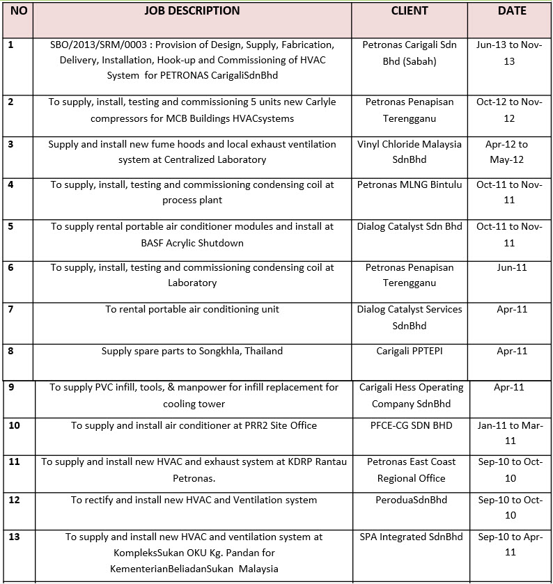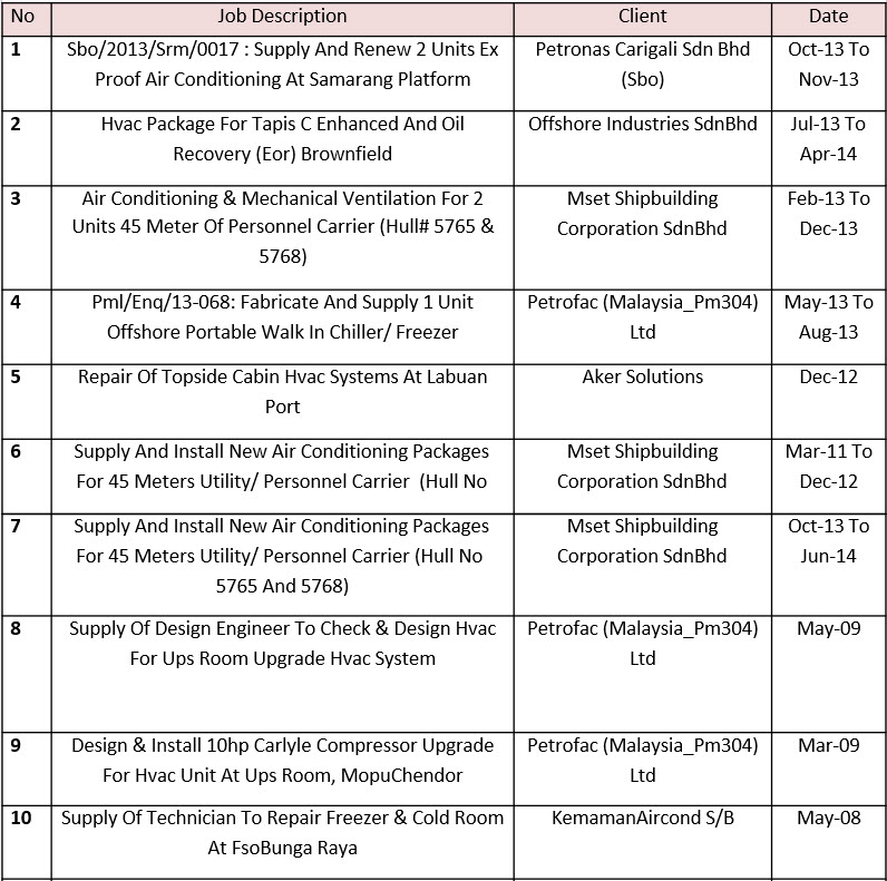 Our Company provide engineering services in particular to servicing of rotating equipment and machinery for oil and gas related industry, PETRONAS, Esso Mobil and BP Oil.